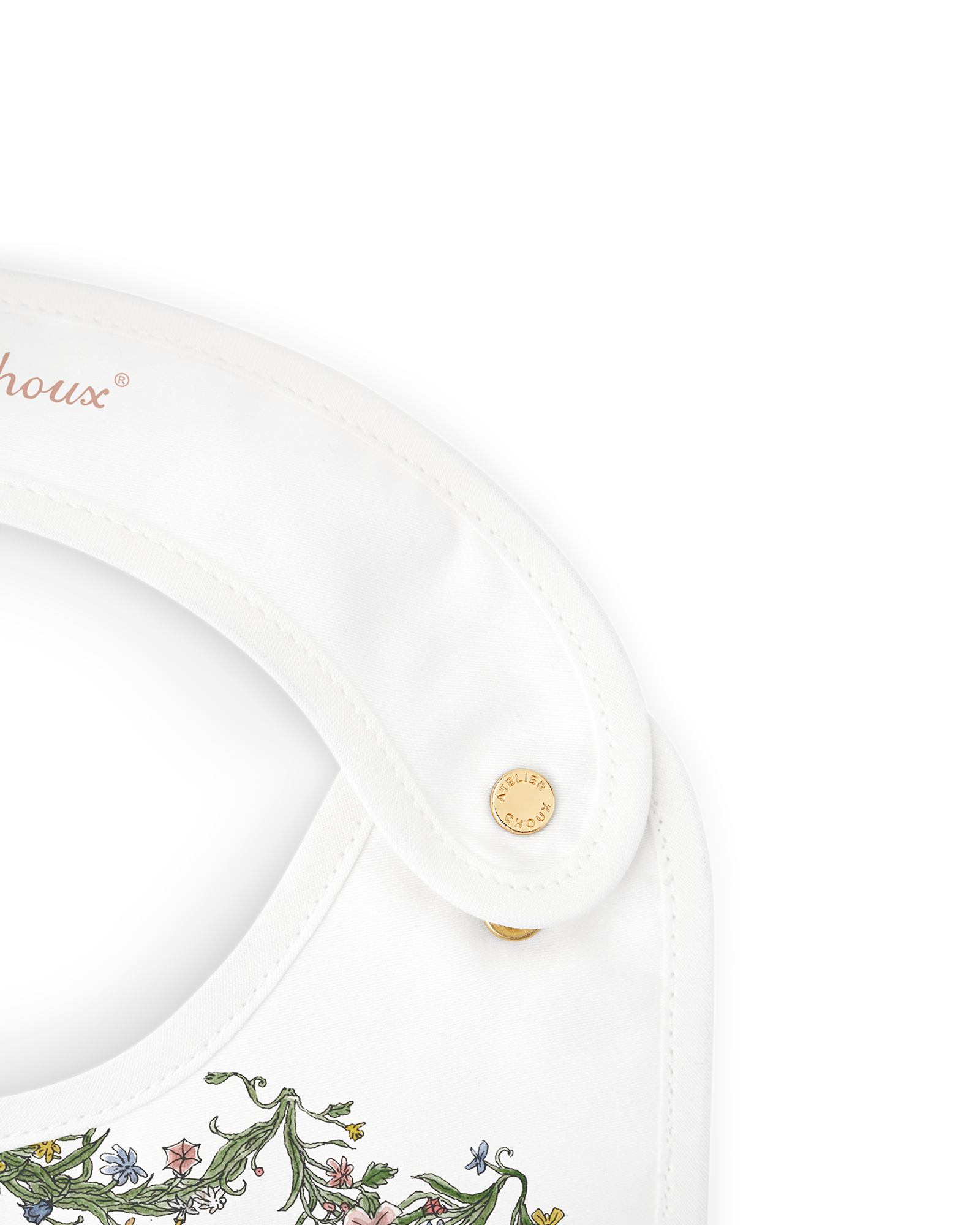 Reversible and adorned with original illustrations on both sides, the Atelier Choux bib blends practicality with artistic charm. The bib is adjustable and features branded golden snaps. Recommended from birth to 24 months.
