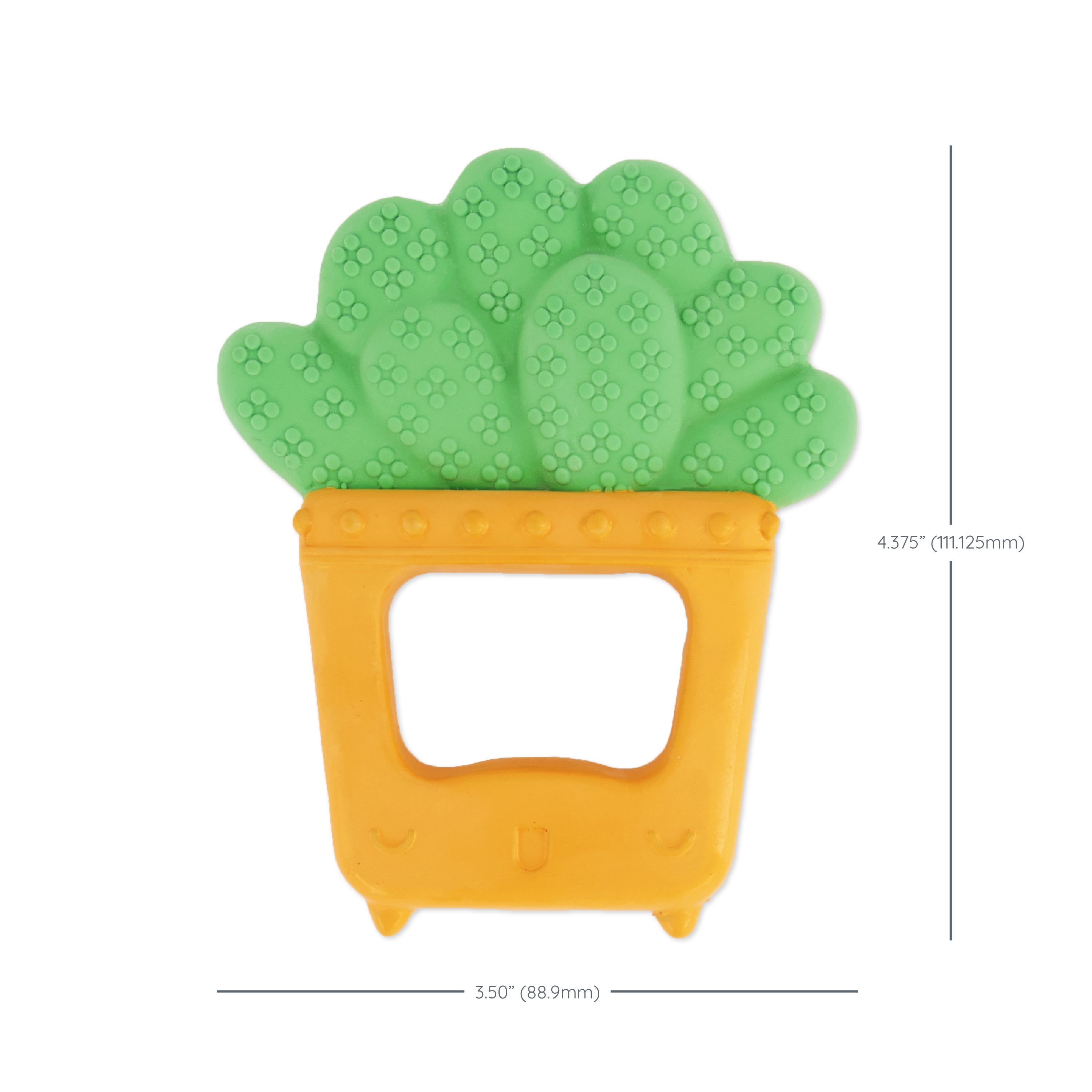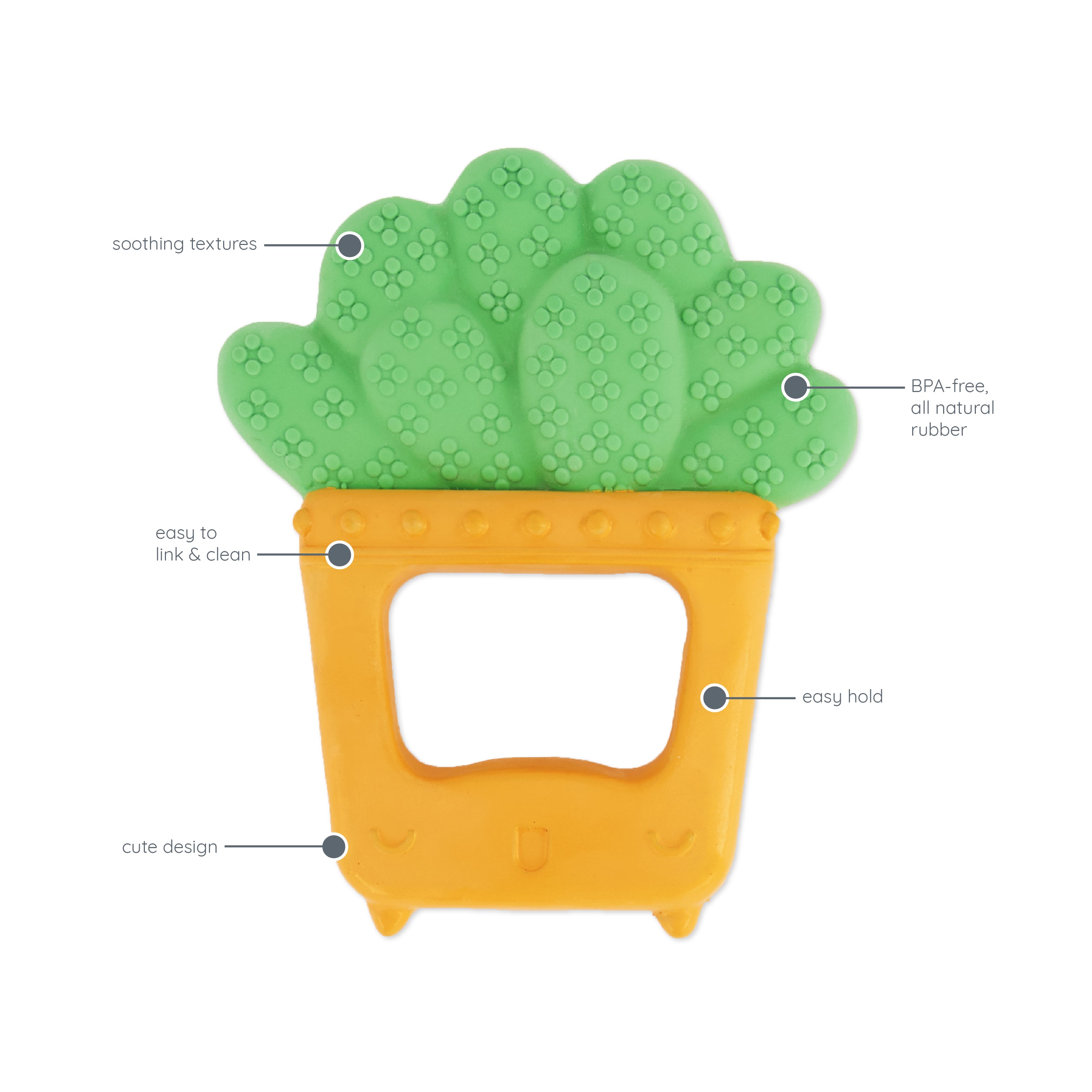 Your baby will love the Squeeze & Teethe Succulent Teether by Infantino. This BPA-free, all natural rubber teether closely mimics the feel of skin. It's great for babies needing to gnaw on something that feels more natural. Interesting textures soothe tender gums and set-off a sensory exploration of grooves, curves, and bumps. Your baby can use this adorable teether during mouthing and teething stages. It's lightweight and perfectly sized for little hands to hold and explore. Easy to wipe clean and link for on the go teething relief.